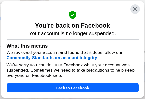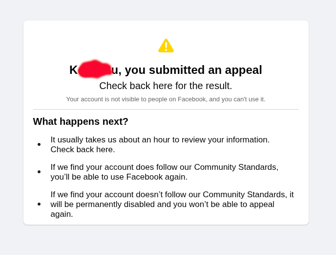 Fortunately, I am now able to use Facebook again, but I am concerned that it may become unavailable again at any time. In the worst case scenario, my account may be permanently deleted.