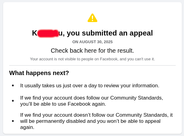 My Facebook account was suddenly locked today, August 30th, 2025, at around 3pm.